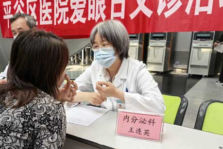 2024年6月6日是第29个全国“爱眼日”,今年的主题为“关注普遍的眼健康”。为了普及眼健康知识,提高公众对眼健康的重视,6月6日上午,北京友谊医院平谷医院眼科、内分泌科在门诊楼一层大厅联合举办了一场别开生面的“爱眼日”义诊活动,主题为“关注普遍的眼健康,全民阻击糖尿病相关眼病”。