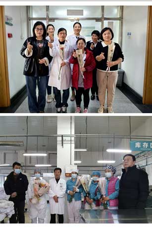 “节日快乐!”一句简单的祝福语让医务人员倍感温暖。每到一处,院领导都与女职工亲切交谈并亲手送上鲜花。刚接过领导送来的鲜花,她们又继续投入到为患者的诊治中。忙碌的身影,娇艳的鲜花,映衬着女职工们脸上的笑容,这份节日的温暖如点点星火凝聚着医者仁心。