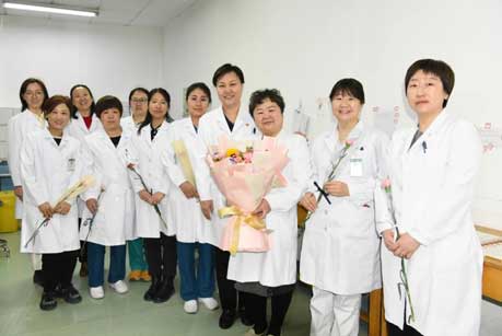 在妇产科,执行院长王慧英将芬芳的花朵送到准妈妈手中。初为人母的喜悦,收到鲜花的感动,瞬间让准妈妈感受到了浓浓的关怀。洋溢在妇产科病房内的,不仅仅有迎接新生的啼哭,还有着医院对产妇暖暖的情谊。