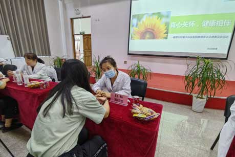 活动的第二部分是为在场职工进行健康义诊。参加此次活动的医务人员对前来义诊的职工进行仔细地问诊、检查,给予专业的诊治建议及用药指导,对职工提出的疑问进行详细解答,并为他们普及医学常识。体检中心医务人员对职工的异常体检结果给予了针对性的指导。