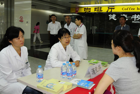 北京友谊医院消化科专家李文燕、胸外科专家常栋、眼科专家李爽携手我院相关科室专家在门诊大厅开展了院内义诊活动。专家认真义诊,病人踊跃咨询,使我区居民不出平谷就能享受友谊这样三级甲等医院的免费义诊。
