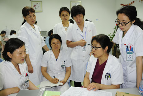 随后,各位专家深入科室了解情况并马上开展了工作指导。友谊医院妇产科负责计划生育专家林青就计划生育工作给予了合理的、规范性指导建议。之后又不辞劳苦地对产后大出血疑难病例给予指导。目前,友谊医院妇产科在自身工作已经非常繁忙的情况下,依然鼎力支持我院的科室建设,选派专家来院不定期开展手术、查房等。友谊医院病理科周小鸽主任做出承诺,全面帮扶我院病理科的学科建设:如疑难病理会诊。我院需要会诊的疑难病理,病理科将病理切片送到友谊医院病理科,友谊医院病理科专家会诊完毕后签发正式的病理报告,免去了病人往返北京的辛苦;我院病理需要做基因检测的项目,可以统一将切好的白片或蜡块和病理切片一起送到友谊医院病理科检测;友谊医院病理科每天早晨8:00有业务学习及讲课,我院病理科可以通过网络和友谊医院一起学习;病理科人员可以随时到友谊医院参观学习或进修,向专家们请教问题;友谊医院病理科的专家可以定期来院讲课,指导我院病理科的工作。输血科专家表示将在今后的工作中保持紧密联系,多多交流与沟通。