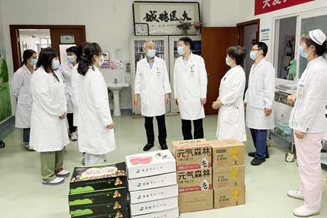 此次院领导深入临床一线慰问,还为忙碌中的大家带来水果等慰问品。医务人感受到领导们的关怀后,纷纷表示不能辜负领导们的期望,要更加努力工作,为我区人民生命健康保驾护航!