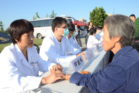 此次活动我院高度重视,由副院长王建云亲自带队,组建一支由中医科、内科、外科共8名医护人员的医疗队,通过健康咨询、专科诊断等形式,进行常见病、慢性病的咨询和一般诊疗指导,普及医学常识和健康知识,为群众免费测血压和血糖,并发放健康宣传材料。